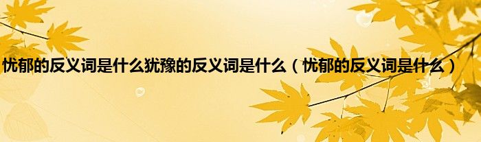 本文,忧郁的反义词是什么犹豫的反义词是什么,忧郁的反义词是什么到此就分享完毕,希望对大家有所帮助。