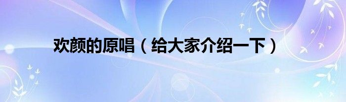 欢颜的原唱(给大家介绍一下)