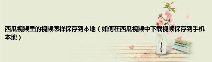 本文,西瓜视频里的视频怎样保存到本地,如何在西瓜视频中下载视频保存到手机本地到此就分享完毕,希望对大家有所帮助。