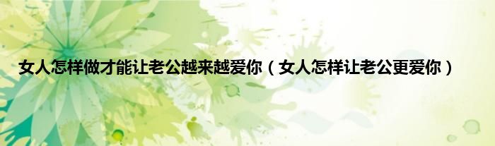 大家好,小问来为大家解答以上问题。女人怎样做才能让老公越来越爱你,女人怎样让老公更爱你这个很多人还不知道,现在让我们一起来看看吧!