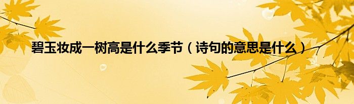 本文,碧玉妆成一树高是什么季节,诗句的意思是什么到此就分享完毕,希望对大家有所帮助。