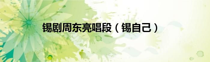 大家好,小问来为大家解答以上问题。锡剧周东亮唱段,锡自己这个很多人还不知道,现在让我们一起来看看吧!