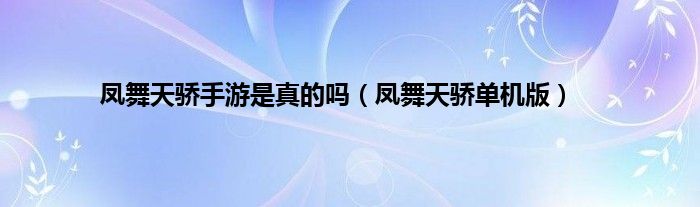 大家好,小问来为大家解答以上问题。凤舞天骄手游是真的吗,凤舞天骄单机版这个很多人还不知道,现在让我们一起来看看吧!