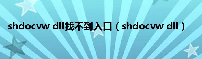 大家好,小问来为大家解答以上问题。shdocvw dll找不到入口,shdocvw dll这个很多人还不知道,现在让我们一起来看看吧!