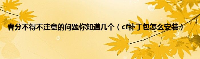 大家好,小问来为大家解答以上问题。春分不得不注意的问题你知道几个,cf补丁包怎么安装这个很多人还不知道,现在让我们一起来看看吧!