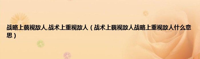 以上就是【战略上藐视敌人,战术上重视敌人,战术上藐视敌人战略上重视敌人什么意思】相关内容。