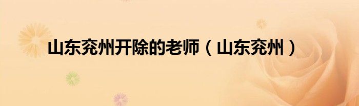 大家好,小问来为大家解答以上问题。山东兖州开除的老师,山东兖州这个很多人还不知道,现在让我们一起来看看吧!