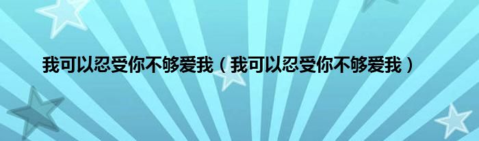大家好,小问来为大家解答以上问题。我可以忍受你不够爱我,我可以忍受你不够爱我这个很多人还不知道,现在让我们一起来看看吧!