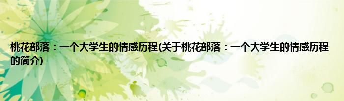 本文关于桃花部落:一个大学生的情感历程的简介就讲解完毕,希望对大家有所帮助。