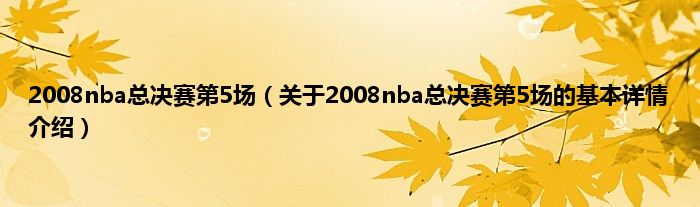 本文关于2008nba总决赛第5场的基本详情介绍就讲解完毕,希望对大家有所帮助。