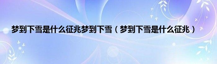 大家好,综合小编来为大家讲解下。梦到下雪是什么征兆梦到下雪,梦到下雪是什么征兆这个很多人还不知道,现在让我们一起来看看吧!