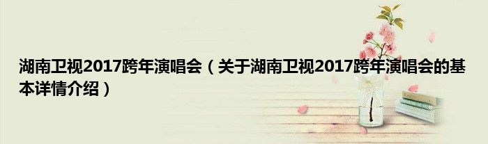 本文关于湖南卫视2017跨年演唱会的基本详情介绍就讲解完毕,希望对大家有所帮助。