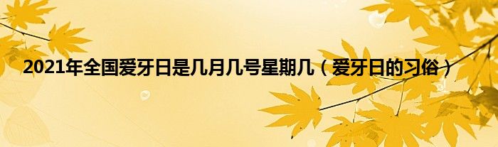 大家好,综合小编来为大家讲解下。2021年全国爱牙日是几月几号星期几,爱牙日的习俗这个很多人还不知道,现在让我们一起来看看吧!