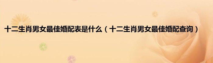 大家好,综合小编来为大家讲解下。十二生肖男女最佳婚配表是什么,十二生肖男女最佳婚配查询这个很多人还不知道,现在让我们一起来看看吧!