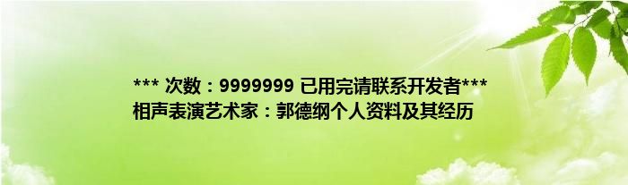大家好,综合小编来为大家讲解下。*** 次数:9999999 已用完请联系开发者*** 相声表演艺术家:郭德纲个人资料及其经历这个很多人还不知道,现在让我们一起来看看吧!
