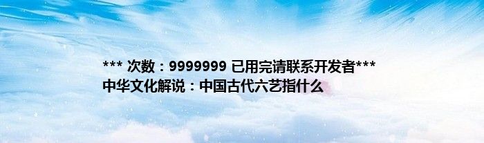 本文*** 次数:9999999 已用完请联系开发者*** 中华文化解说:中国古代六艺指什么到此分享完毕,希望对大家有所帮助。