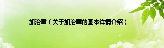 本文关于加治瞳的基本详情介绍就讲解完毕,希望对大家有所帮助。