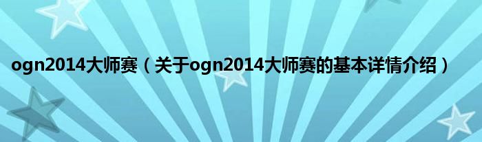 大家好我是小蝌蚪,ogn2014大师赛,关于ogn2014大师赛的基本详情介绍很多人还不知道,那么现在让我们一起来看看吧!