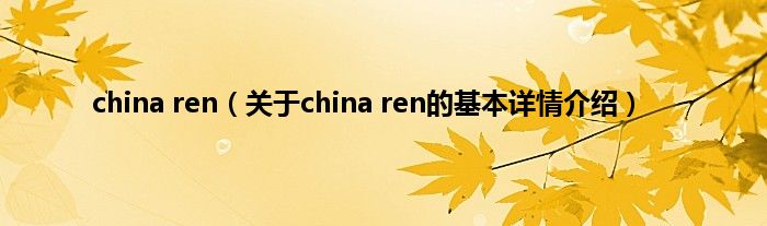 本文关于china ren的基本详情介绍就讲解完毕,希望对大家有所帮助。