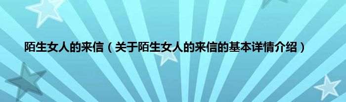 本文关于陌生女人的来信的基本详情介绍就讲解完毕,希望对大家有所帮助。