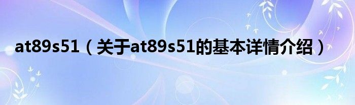 本文关于at89s51的基本详情介绍就讲解完毕,希望对大家有所帮助。