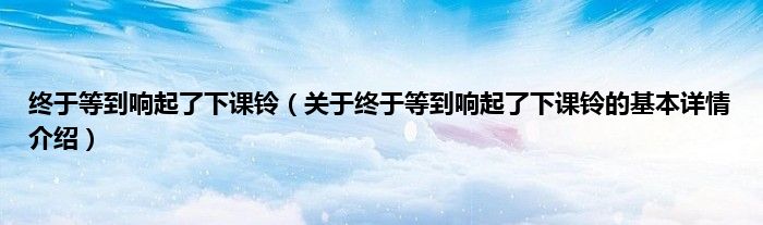 本文关于终于等到响起了下课铃的基本详情介绍就讲解完毕,希望对大家有所帮助。