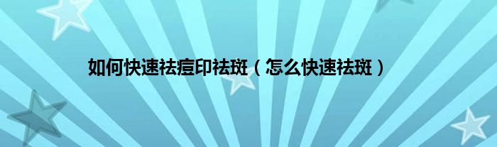 以上就是【如何快速祛痘印祛斑,怎么快速祛斑】相关内容。