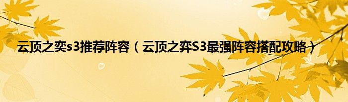 欢迎观看本篇文章,小升来为大家解答以上问题。云顶之奕s3推荐阵容,云顶之弈S3最强阵容搭配攻略很多人还不知道,现在让我们一起来看看吧!