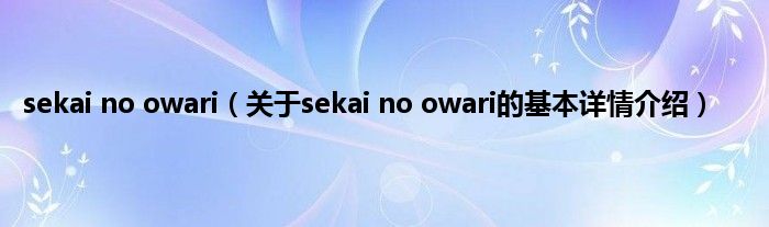 本文关于sekai no owari的基本详情介绍就讲解完毕,希望对大家有所帮助。