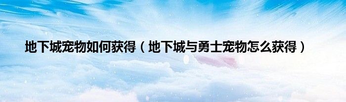 以上就是【地下城宠物如何获得,地下城与勇士宠物怎么获得】相关内容。