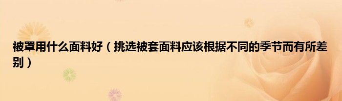 欢迎观看本篇文章,小升来为大家解答以上问题。被罩用什么面料好,挑选被套面料应该根据不同的季节而有所差别很多人还不知道,现在让我们一起来看看吧!