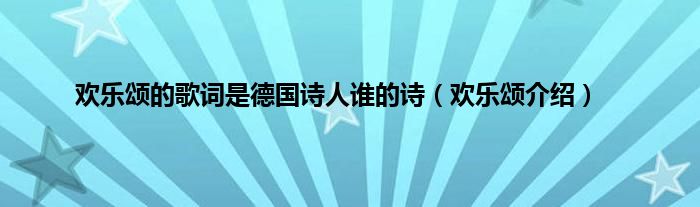 欢迎观看本篇文章,小升来为大家解答以上问题。欢乐颂的歌词是德国诗人谁的诗,欢乐颂介绍很多人还不知道,现在让我们一起来看看吧!
