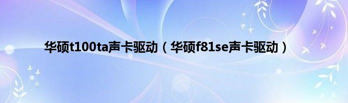 大家好,小问来为大家解答以上问题。华硕t100ta声卡驱动,华硕f81se声卡驱动这个很多人还不知道,现在让我们一起来看看吧!