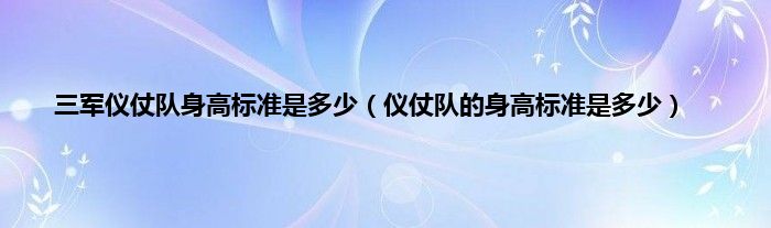 大家好,综合小编来为大家讲解下三军仪仗队身高标准是多少,仪仗队的身高标准是多少这个很多人还不知道,现在让我们一起来看看吧!