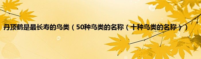 大家好,综合小编来为大家讲解下丹顶鹤是最长寿的鸟类,50种鸟类的名称,十种鸟类的名称这个很多人还不知道,现在让我们一起来看看吧!