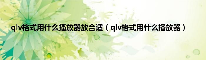 大家好,综合小编来为大家讲解下qlv格式用什么播放器放合适,qlv格式用什么播放器这个很多人还不知道,现在让我们一起来看看吧!