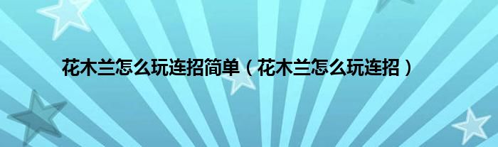 大家好,综合小编来为大家讲解下花木兰怎么玩连招简单,花木兰怎么玩连招这个很多人还不知道,现在让我们一起来看看吧!