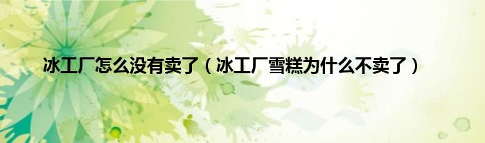 大家好,综合小编来为大家讲解下冰工厂怎么没有卖了,冰工厂雪糕为什么不卖了这个很多人还不知道,现在让我们一起来看看吧!