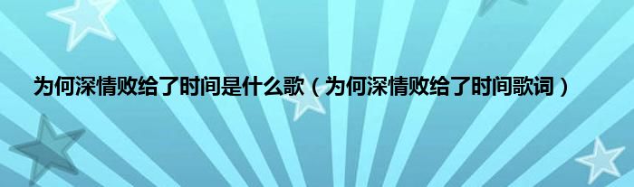 欢迎观看本篇文章,小升来为大家解答以上问题。为何深情败给了时间是什么歌,为何深情败给了时间歌词很多人还不知道,现在让我们一起来看看吧!