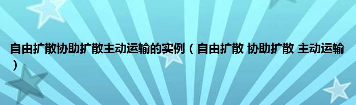 大家好,小问来为大家解答以上问题。自由扩散协助扩散主动运输的实例,自由扩散 协助扩散 主动运输这个很多人还不知道,现在让我们一起来看看吧!