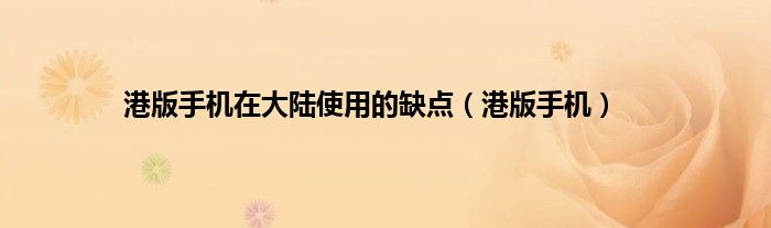 大家好,小问来为大家解答以上问题。港版手机在大陆使用的缺点,港版手机这个很多人还不知道,现在让我们一起来看看吧!