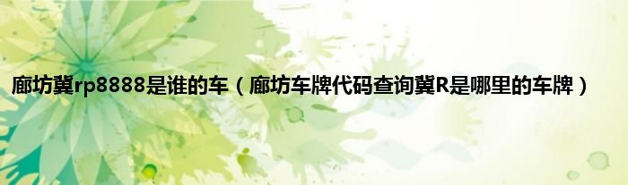 大家好,综合小编来为大家讲解下。廊坊冀rp8888是谁的车,廊坊车牌代码查询冀R是哪里的车牌这个很多人还不知道,现在让我们一起来看看吧!