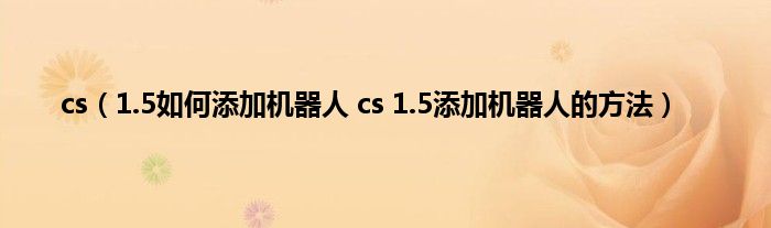 大家好,综合小编来为大家讲解下cs,1.5如何添加机器人 cs 1.5添加机器人的方法这个很多人还不知道,现在让我们一起来看看吧!