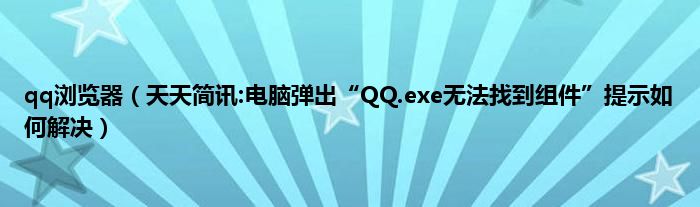 大家好,综合小编来为大家讲解下qq浏览器,天天简讯:电脑弹出“QQ.exe无法找到组件”提示如何解决这个很多人还不知道,现在让我们一起来看看吧!