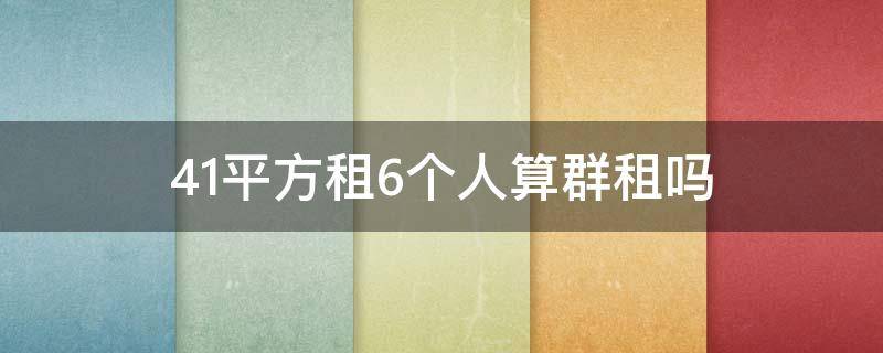 41平方租6个人算群租。出租房屋人均居住面积低于5平方米,以及每个房间居住的人数超过2人,算群租。41平方米的面积通常只有两间房的大小,每个房间要住3人,因此属于群租。群租是指出租者将住宅分别向两个以上的承租者租赁,并订有两个以上书面租约或者口头租约,以及承租人及二房东将承租房屋部分或者全部,再转租给两个以上新承租人,并有两个以上书面租约或口头租约的房子。根据《商品房屋租赁管理办法》第八条第一款:出租住房的,应当以原设计的房间为最小出租单位,人均租住建筑面积不得低于当地人民政府规定的最低标准。