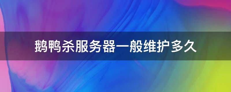 鹅鸭杀服务器一般维护3天。《鹅鸭杀》是Gaggle Studios开发的策略休闲游戏,于2021年10月4日在Steam平台上发布。玩家在游戏中将化身为鹅阵营、鸭子阵营或中立阵营中的一员,并为了让自己所处的阵营获得胜利而与其他玩家展开一场场紧张刺激的推理。开始游戏后,玩家将被随机分配到鹅阵营、鸭子阵营或者中立阵营中,不同阵营的角色也各自有着不同的技能。游戏中的道具分为货币与装扮,货币分为2种:银币与金币。在完成各自小任务时,玩家可以获得各种颜色的齿轮,它可以解锁丰富多样的击杀特效。