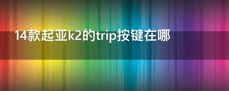 14款起亚k2的trip按键在方向盘下面的筒式仪表盘上。该键为选择行车电脑中记录车辆里程及电子油耗数据的切换键。起亚全称起亚株式会社,成立于1944年,是韩国历史上第一家汽车制造商,从两轮车启程跻身世界10大汽车制造商。起亚成立于1944年,初称京城精密工业,1952年改称起亚工业,起亚二字寓意起于亚洲或亚洲崛起。2000年起亚并入现代汽车,形成现代起亚汽车集团。