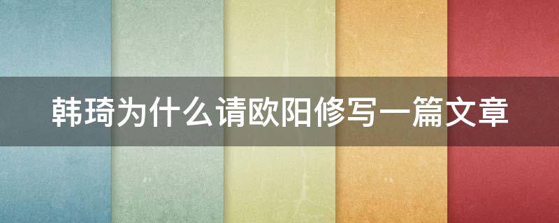 最佳答案韩琦请欧阳修写一篇文章是因为宋代的时候,每当亭台楼阁建成,总要请在文坛有名望的人写文章记载。而韩琦任宰相时,欧阳修在任副相,二人共朝为官,关系密切。当时欧阳修又是最有名的大文豪,韩琦请欧阳修为昼锦堂撰文,欧阳修也答应了韩琦的请求。《相州昼锦堂记》是宋代文学家欧阳修为宰相韩琦在...