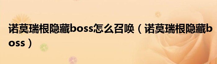 诺莫瑞根隐藏boss怎么召唤(诺莫瑞根隐藏boss)