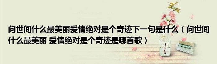 关于问世间什么最美丽爱情绝对是个奇迹下一句是什么,问世间什么最美丽 爱情绝对是个奇迹是哪首歌这个很多人还不知道,今天菲菲来为大家解答以上的问题,现在让我们一起来看看吧!